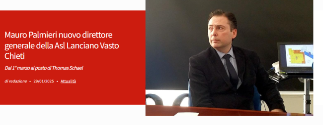 "Esprimo le mie felicitazioni a Mauro Palmieri che si insedierà alla guida della nostra Azienda dal 1° marzo. Sono certo che le competenze ed esperienze acquisite gli permetteranno di fare un buon lavoro e portare a compimento attività e opere già avviate. Volentieri mi rendo disponibile a un passaggio di consegne da avviare fin da subito, così da garantire una transizione ordinata e fluida, che consenta al nuovo Direttore un'operatività immediata. Auguro buon lavoro a Palmieri, al quale questo territorio riserverà la stessa cordiale accoglienza che ho ricevuto io fin dal primo momento. L'Abruzzo è terra generosa, qui si sentirà a casa"