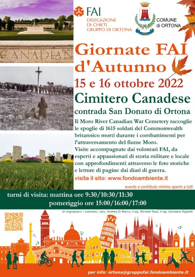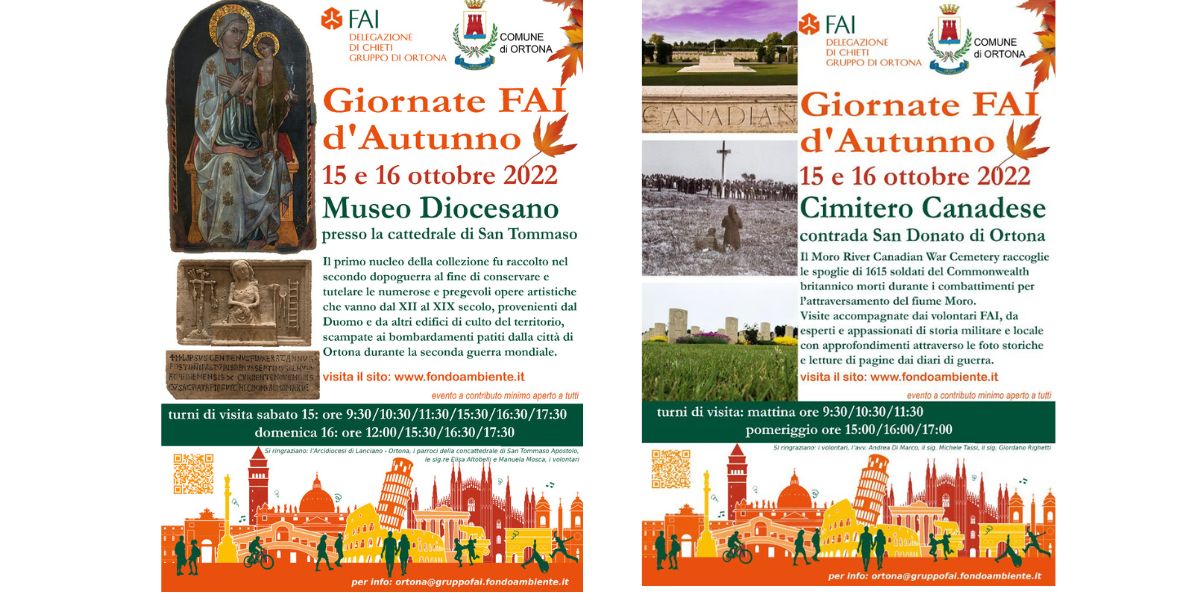 Sabato 15 e domenica 16 , in occasione delle Giornate Fai d'autunno, due luoghi simbolo del patrimonio ortonese saranno aperti al pubblico ovvero il Museo Diocesano, posto all'interno della basilica di san Tommaso apostolo, e il Cimitero militare canadese situato nella frazione di San Donato.