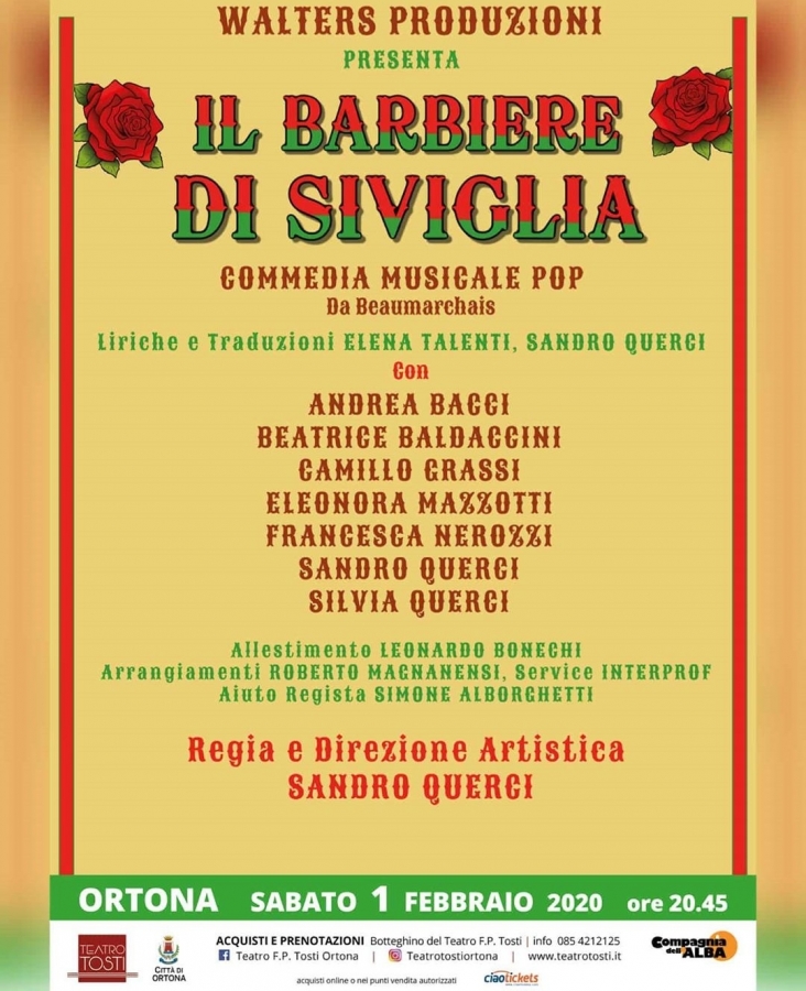 "Il barbiere di Siviglia", in una veste tutta nuova, sarà in scena, sabato 1 febbraio, alle 20.45, al Teatro Tosti di Ortona. Uno spettacolo nuovo, inedito nella sua forma e allestimento, una commedia musicale pop che mantiene però intatti i contenuti della vicenda narrata in prosa da Beaumarchais.