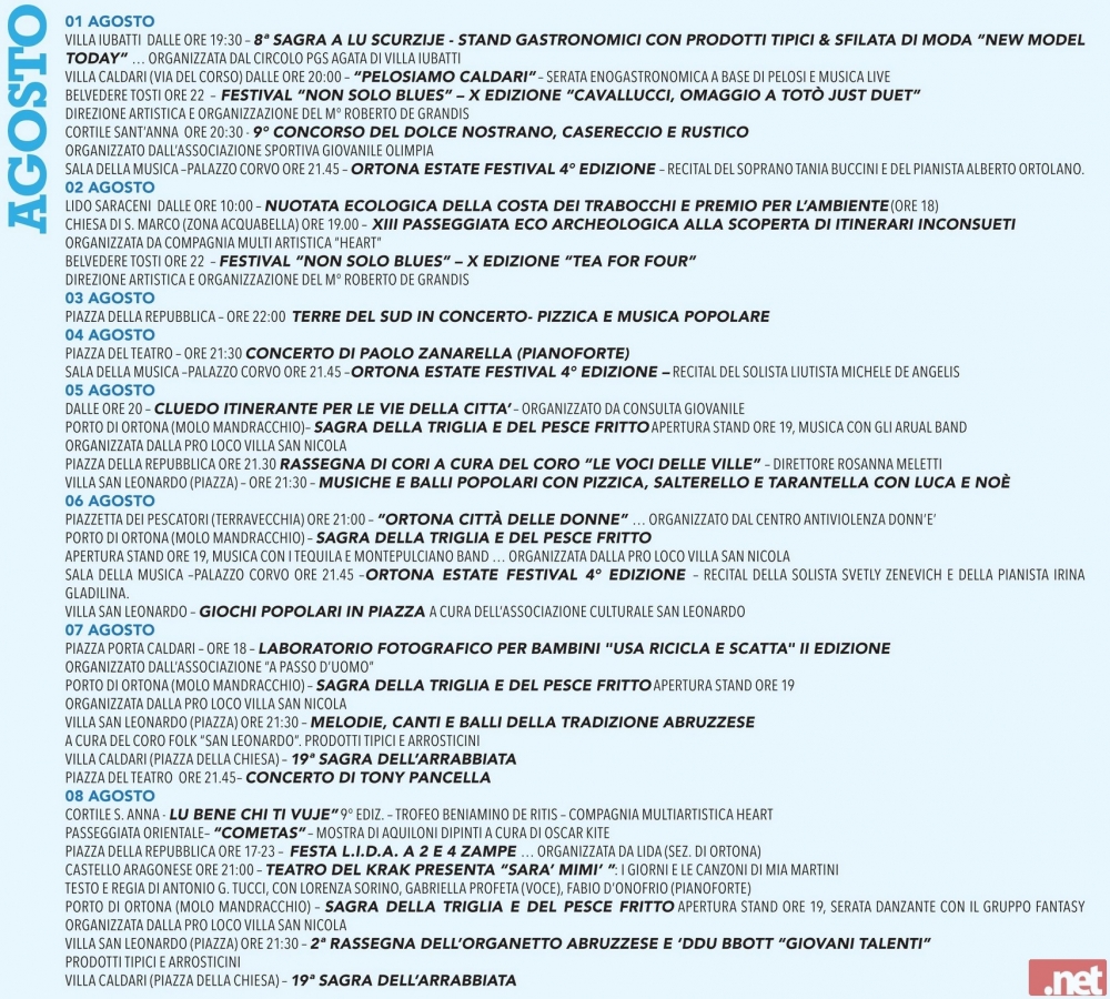 Un cartellone estivo di qualità nonostante il budget ridotto: Paolo Cieri dell'Ente Manifestazioni Ortonesi illustra le varie iniziative, leggi...