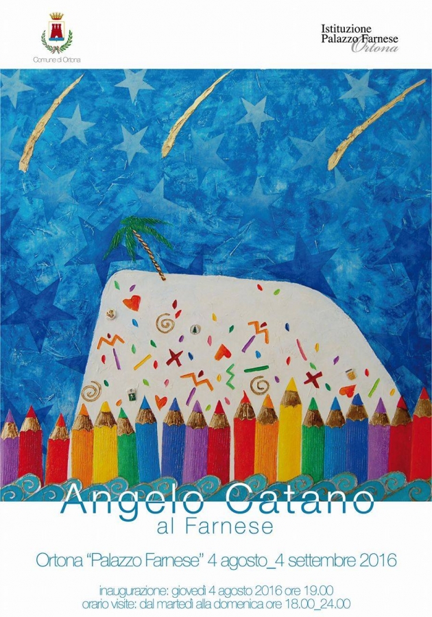 Giovedì 4 agosto alle ore 19, nella sala Margherita del palazzo Farnese in Ortona, verrà inaugurata la mostra di pittura ”Angelo Catano al Farnese”.