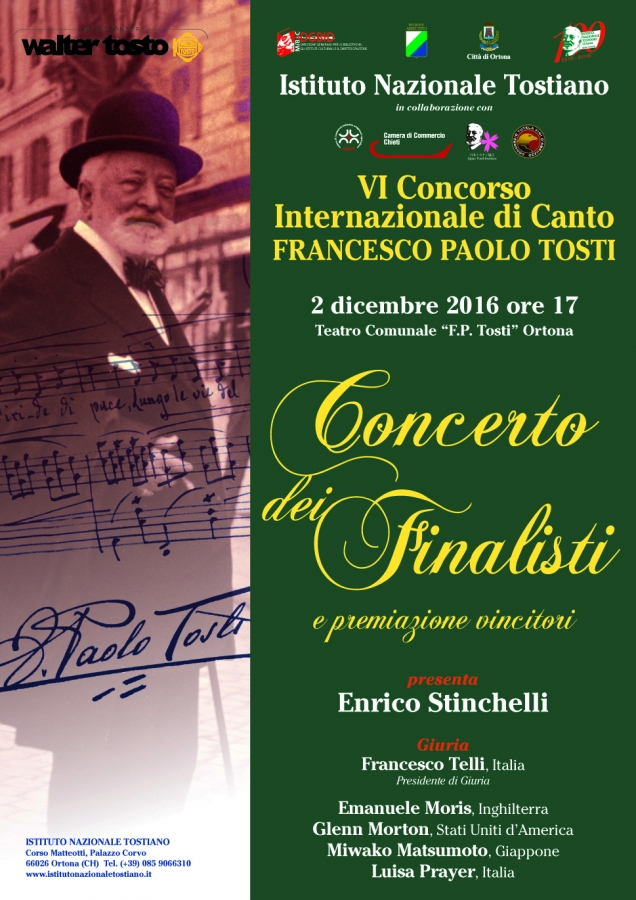 L'evento più atteso dell'anno del centenario della morte di Tosti è vicino: il concorso internazionale dedicato a Tosti e alle sue romanze sarà il momento finale dell'intero anno tostiano. La giuria internazionale e il mondo musicale avranno modo di proclamare i nuovi migliori interpreti della romanza vocale da camera.