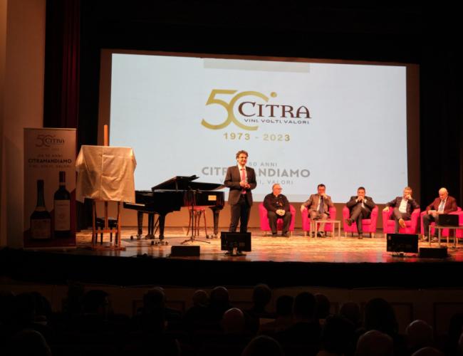 Un anniversario emozionante in una cornice d'eccezione, il Teatro Tosti, posto nel centro di Ortona, la città dove ha sede Citra. In occasione dell'evento, rivolto ai rappresentanti della base sociale ed agli stakeholder del territorio, è stato organizzato un convegno dal titolo "Da 50 anni CITRAMANDIAMO Vini, Volti, Valori con lo sguardo al futuro", moderato dal Direttore responsabile di Wine Meridian, Fabio Piccoli.