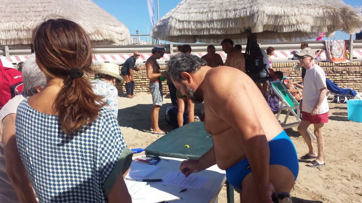 La 20^ edizione della NUOTATA ECOLOGICA, svoltasi al Lido Saraceni, ha registrato la partecipazione di 49 atleti,di cui alcuni provenienti anche da Firenze, Torino, Venezia e Londra. Un evento molto simpatico e allegro, naturalmente non competitivo, seguito con attenzioni dai bagnanti presenti, sia in spiaggia che lungo il molo Saraceni.