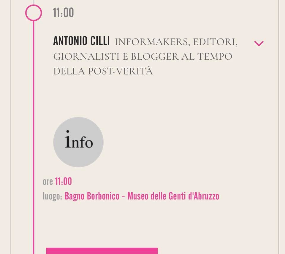 Per visionare il programma completo, cliccate qui, noi saremo presenti con il libro Infomaker sabato 11 alle ore 11:00, presso il Museo delle Genti D’Abruzzo-Bagno Borbonico.