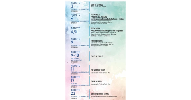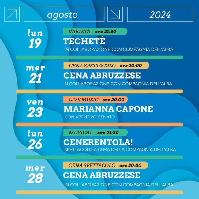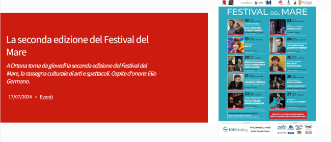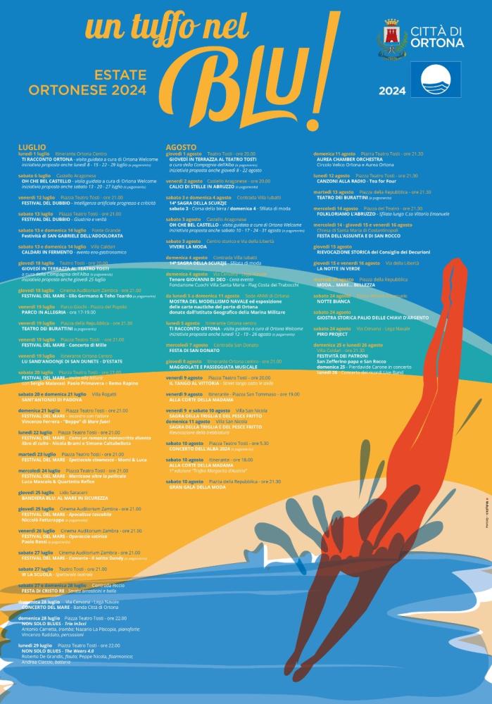 Ci sono gli eventi previsti nel programma delle manifestazioni e iniziative dell’"ESTATE ORTONESE 2024” organizzato dal Comune di Ortona e riportati nella delibera del Commissario straordinario ,Gianluca Braga .