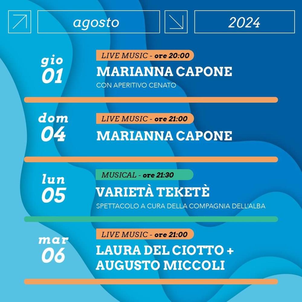 la rassegna estiva “Giovedì in terrazza” alle 20 l’aperitivo alle 21, gli spettacoli di teatro e musica
