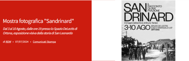 Dal 3 al 10 Agosto, dalle ore 19 presso lo Spazio DeLectis di Ortona, esposizione visiva della storia di San Leonardo