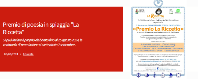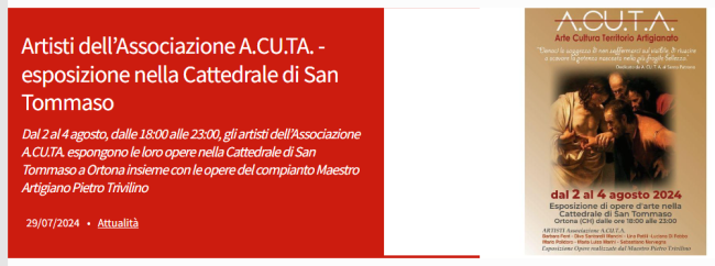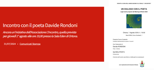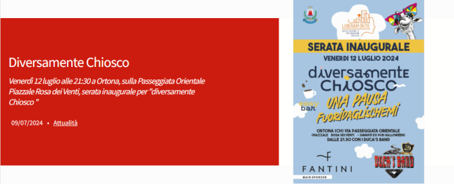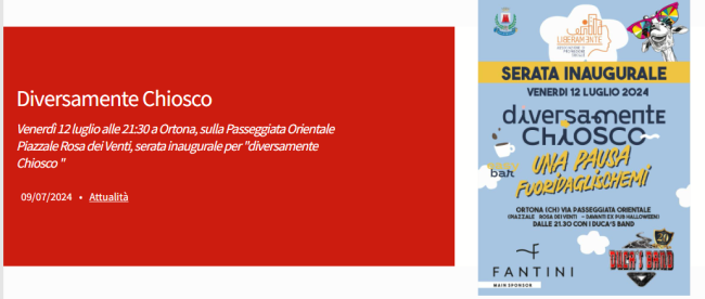 L'elenco degli eventi organizzati dal Comune di Ortona e pubblicato il 2 /7/2024 è disponibile anche in pdf SCARICA IN PDF