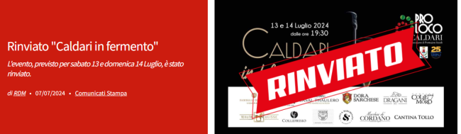 - Villa Caldari - Rinviato CALDARI IN FERMENTO - evento eno/gastronomico