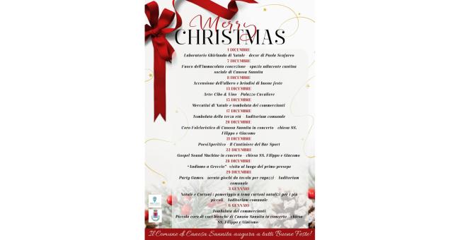 Guardando al prossimo mese, sempre presso l’auditorium comunale il 3 gennaio è in programma un appuntamento per i più piccoli: si tratta di “Natale e cartoni”, un pomeriggio a tema cartoni natalizi per i bambini. Nel giorno dell’Epifania, infine, si terrà una nuova tombolata dei commercianti e il concerto in chiesa del Piccolo coro di voci bianche di Canosa Sannita.