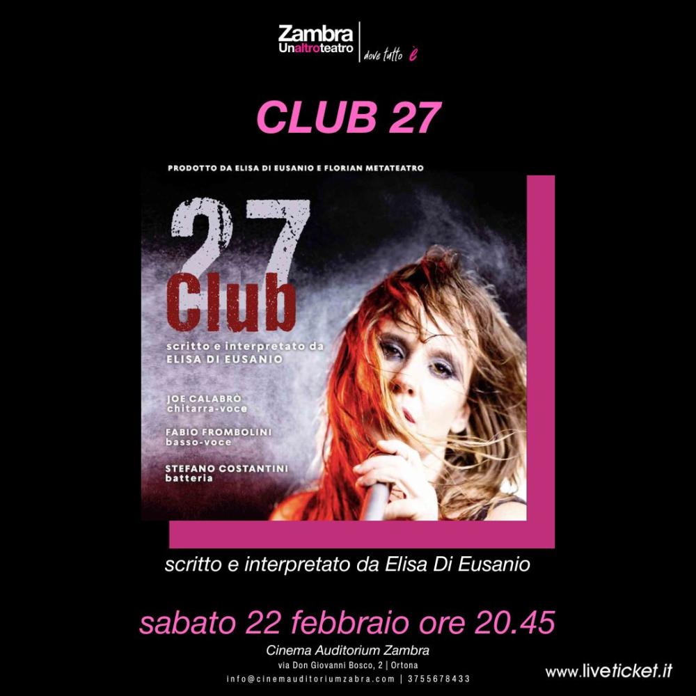 Sabato 22 febbraio alle 20.45, il Cinema Auditorium Zambra di Ortona (Ch) gestito da Unaltroteatro di Lorenza Sorino e Arturo Scognamiglio, ospita una Produzione Florian Metateatro insieme ad Elisa Di Eusanio, attrice abruzzese: il titolo è"Club 27" e si tratta di un evento di musica live e prosa in cui verranno omaggiati alcuni degli artisti musicali che sono deceduti a 27 anni e che hanno lasciato una traccia indelebile nel panorama musicale e non solo.-uoeIGz.jpg)