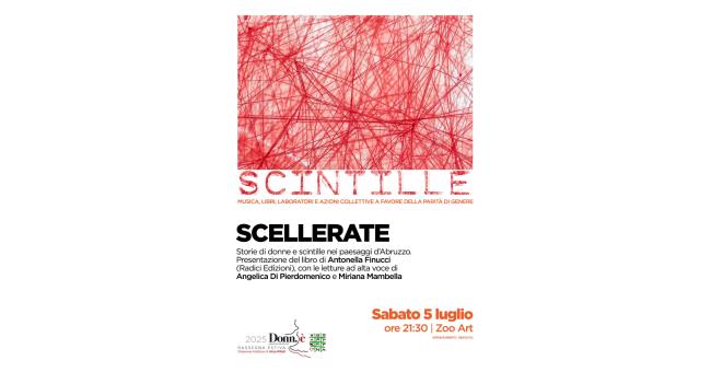 Sabato 5 luglio, alle ore 21.30, a ZooArt presentazione del libro Scellerate- Storie di donne e scintille nei paesaggi d’Abruzzo con l’autrice Antonella Finucci (Radici Edizioni) e con le letture ad alta voce di Angelica Di Pierdomenico e Miriana Mambella.