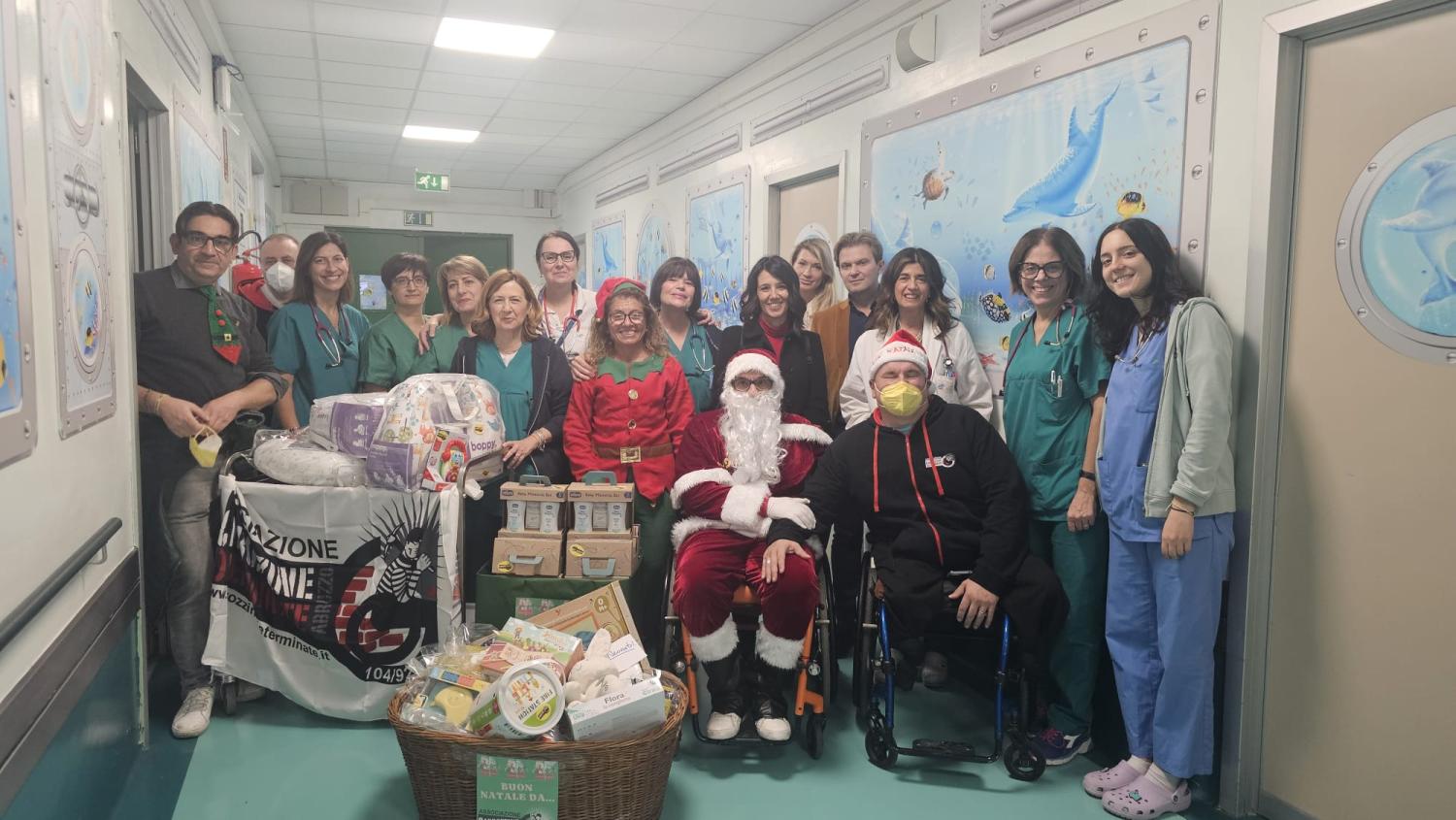 A rendere ancora più magico il momento, un Babbo Natale a bordo di una slitta speciale a due ruote, affiancato dai suoi elfi, che ha incontrato i piccoli pazienti ricoverati, regalando sorrisi, stupore e un momento di autentica serenità.