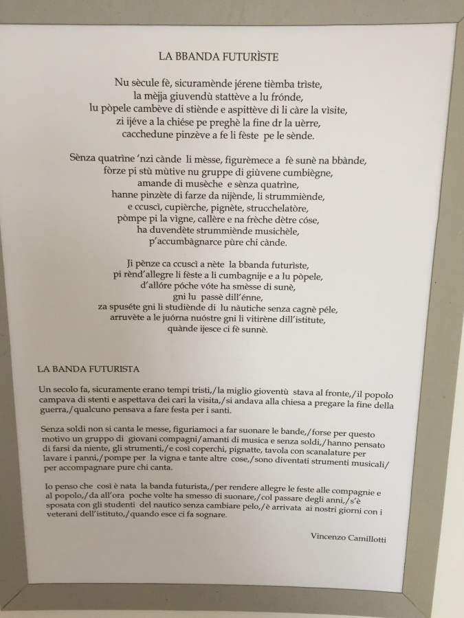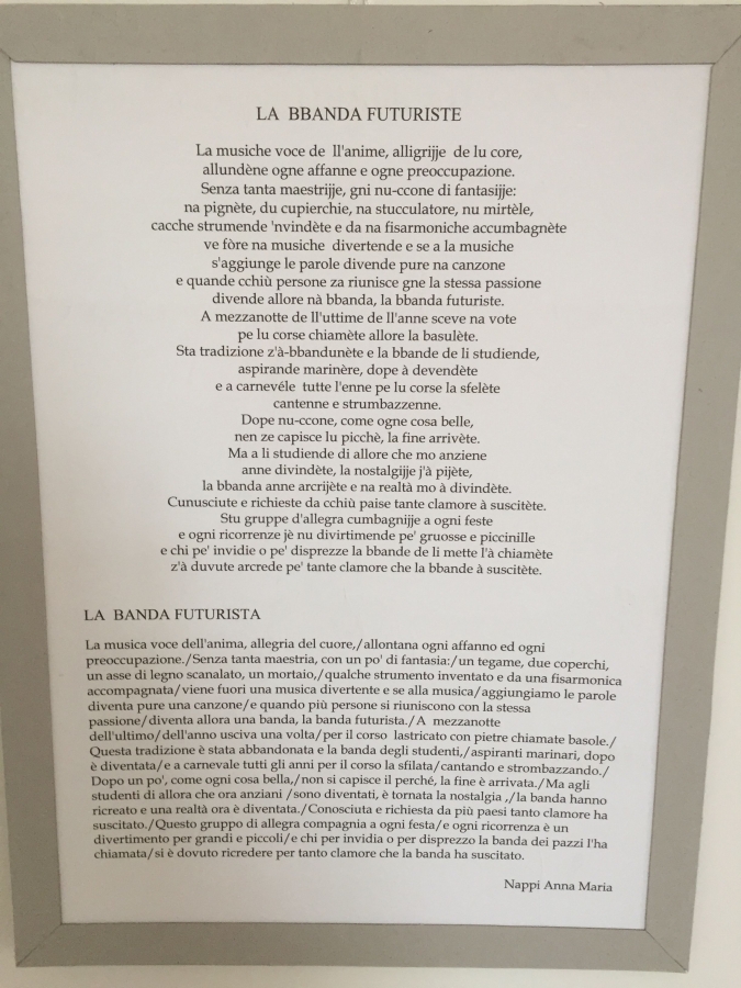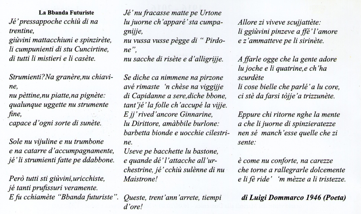 La Bbanda Futurista nasce ad Ortona da un’idea di Rocco Marino nel 1916, guidata dal M° Gennaro Albanese. Sfilava immersa in una marea di gente a mezzanotte nel giorno di capodanno. 41 componenti , suonavano musiche allegre dell’epoca con strumenti musicali quali ottoni, fisarmoniche, chitarre e mandolini, ritmate da altri pseudo musicisti attrezzati con strumenti realizzati rivisitando e modificando attrezzi di cucina o utilizzando pezzi di componenti ad uso agricolo. Poeti e musicisti hanno dedicato a tale Bbanda (doppia B) musiche e componimenti poetici. Sospeso nel 1940 per motivi bellici (Ortona venne denominata la piccola Stalingrado), riprese la sua attività nel 1950 con la collaborazione del maestro Guido Albanese ideatore della famosa "Maggiolata" e compositore di musiche indimenticabili, questo fino agli anni '69. In contemporanea venne imitata dal 1965 al 1972 dagli studenti dell'Istituto Nautico di Ortona nei giorni di carnevale. Nel 2004 la Bbanda Futurista riprende vigore e voglia di rinascere, raccogliendo lo spirito dei padri e facendo proprio il rinvigorimento delle tradizioni Ortonesi.