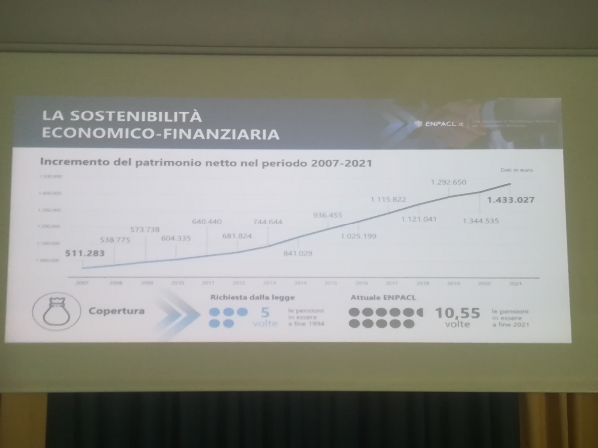 Il bilancio 2021, infatti, si è chiuso con un avanzo di oltre 88 milioni di euro ed il patrimonio netto è ormai prossimo al miliardo e mezzo di euro. Numeri che assicurano per i prossimi 50 anni la sostenibilità economico-finanziaria del pagamento delle prestazioni pensionistiche e il mantenimento permanente del requisito di quota 100 per accedere alla pensione (40 anni di contributi e 60 anni di età), ma senza l’obbligo di dover smettere l’attività professionale.