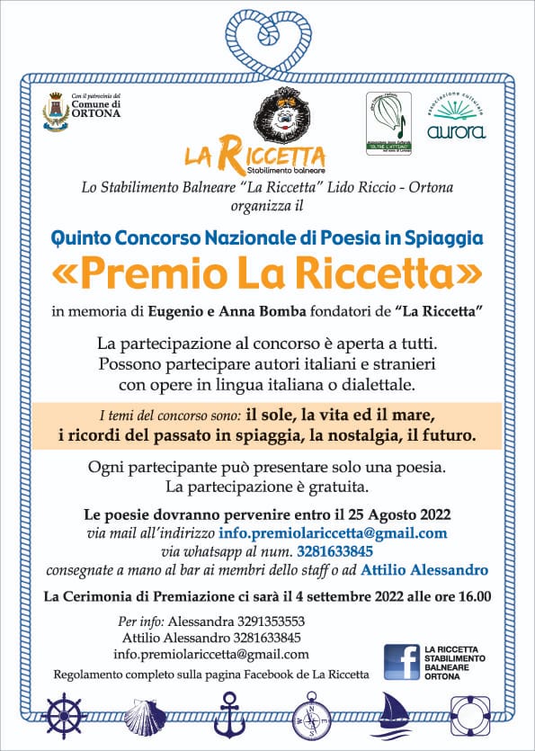 Da questo anno il Premio di poesia in spiaggia “La Riccetta “, ideato da Attilio Alessandro Ortolano nel 2018, diventa nazionale, anche se già nelle scorse edizioni ha ricevuto poesie da varie regioni d’Italia .
