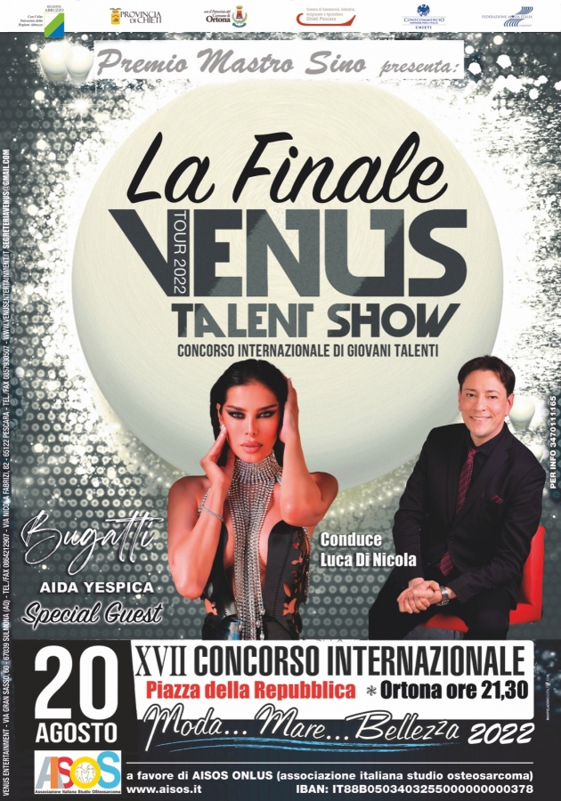 Torna il 'Venus talent show & Premio Mastro Sino' spettacolo di moda, danza e canto, trampolino di lancio per giovani talenti che potranno esibirsi e tentare la scalata al successo.
