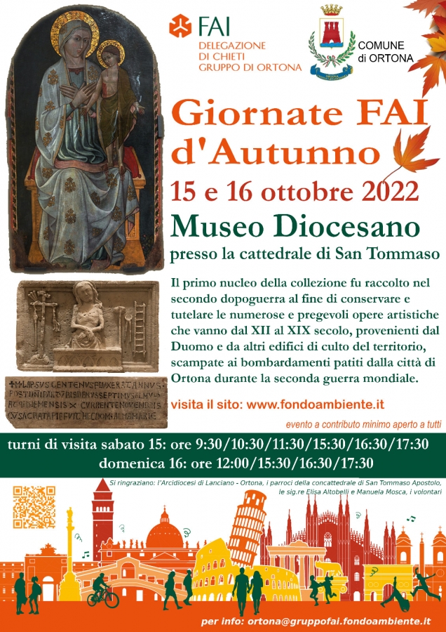 Sabato 15 e domenica 16 , in occasione delle Giornate Fai d'autunno, due luoghi simbolo del patrimonio ortonese saranno aperti al pubblico ovvero il Museo Diocesano, posto all'interno della basilica di san Tommaso apostolo, e il Cimitero militare canadese situato nella frazione di San Donato.