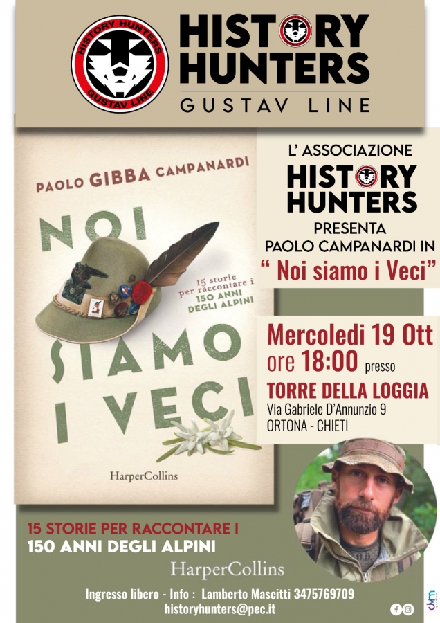 L’Associazione History Hunters-GUSTAV LINE, presieduta da Lamberto Mascitti, si è impegnata per avere anche ad Ortona, Mercoledì 19 ottobre alle 18 a Torre della Loggia, la presentazione del libro di Paolo Campanardi .