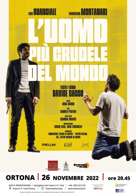 C'è grande attesa per l'appuntamento di sabato 26 novembre quando, alle 20.45, al Teatro Tosti diretto dalla Compagnia dell'Alba, saranno in scena gli attori Lino Guanciale e Francesco Montanari nello spettacolo in abbonamento "L'uomo più crudele del mondo". Lo spettacolo è di Davide Sacco