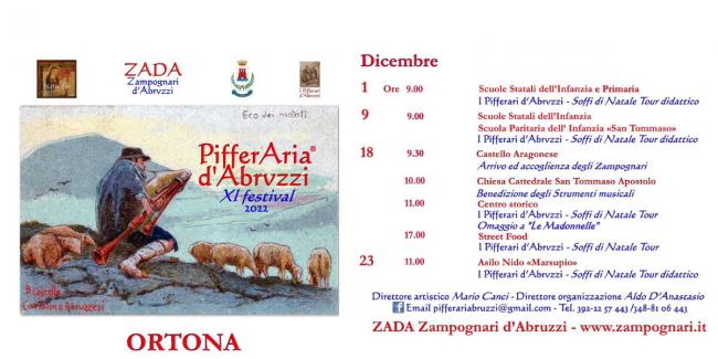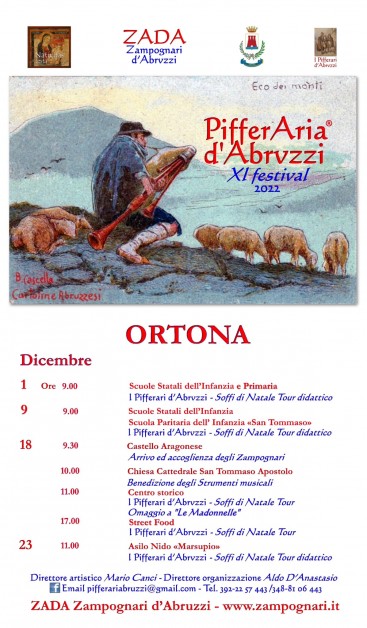 Tornano gli zampognari a Ortona “ 11° Festival PifferAria d’Abruzzi 2022 “, con la direzione artistica di Mario Canci e la direzione organizzativa di Aldo D’Anastasio.
