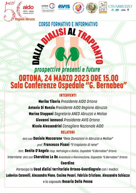 Condividi su: Dalla dialisi al trapianto Venerdì 24 marzo ore 15 Sala conferenze G. Bernabeo " Ortona Condividi su: