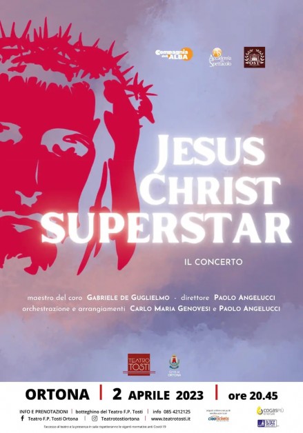 Il consueto appuntamento con il Concerto della Domenica delle Palme , che dà il via ai riti e agli appuntamenti della Settimana Santa, quest'anno si rinnova e propone ai suoi affezionati spettatori un nuovo repertorio ovvero "Jesus Christ Superstar- il concerto". Si tratta di una coproduzione Orchestra Sinfonica Tosti, direttore artistico Paolo Angelucci, e della Compagnia dell'Alba diretta dai maestri Fabrizio Angelini e Gabriele de Guglielmo. Una scelta, quella di celebrare un cult del musical che nasce sulla scorta dell'importante anniversario festeggiato da Jesus Christ Superstar ovvero i 50 anni della trasposizione sul grande schermo del musical omonimo. Resta invariato l' appuntamento ovvero la sera di domenica 2 aprile, Domenica delle Palme, alle ore 20.45, nella cornice dello splendido Teatro Francesco Paolo Tosti di Ortona. L'orchestra e il coro diretti dal maestro Paolo Angelucci, eseguiranno le musiche di Andrew Lloyd Webber arrangiate dai Maestri Carlo Maria Genovesi e dallo stesso Angelucci. I cantanti preparati dal M. Gabriele de Guglielmo, e i musicisti si vestiranno di rock con speciale aggiunta della band per celebrare l'anniversario dall'uscita cinematografica che rese il musical famoso in tutto il mondo. Jesus Christ Superstar racconta l'ultima settimana della vita di Gesù dal punto di vista di Giuda Iscariota, sottolineando dunque il conflitto ideologico tra i due. Le numerose polemiche che la produzione destò per la mancanza di sacralità , non fecero altro che rendere il musical rock una delle produzioni più famose ed imperiture della storia.