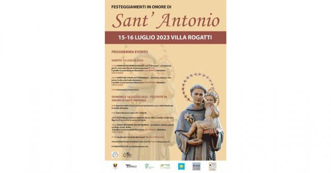 Sabato 15 e Domenica 16 luglio a Villa Rogatti, la FESTA PER SANT'ANTONIO DA PADOVA