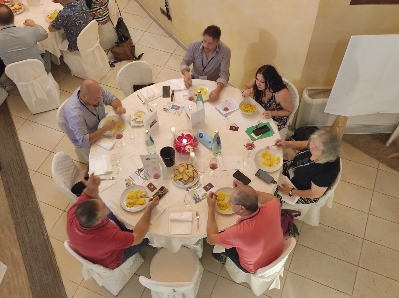 L'iniziativa, che potrebbe presto essere replicata in altre realtà territoriali, si è tenuta alla Dora Sarchese Winery di Ortona. Singolare la modalità di svolgimento di un evento alla cui realizzazione hanno dato un originale contributo la vicepresidente di CNA Giovani Imprenditori Abruzzo, Daniela Giangreco, e l'attore Marcello Sacerdote con il suo "Cuntaterra": tra una portata e l'altra, tutti i commensali cambiano tavolo, mischiandosi tra loro: nuovi incontri, altre idee, altre esperienze a confronto. Diversi i dirigenti presenti all'incontro: il presidente e il direttore regionali di CNA Abruzzo, Savino Saraceni e Graziano Di Costanzo, il presidente e la direttrice della CNA di Chieti, Giuseppe Troilo e Letizia Scastiglia.