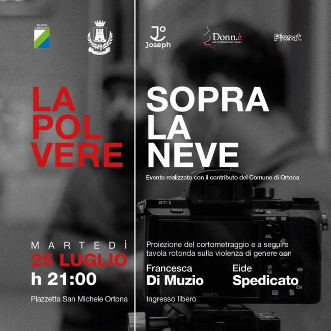 “La polvere sopra la neve”, questo il titolo del cortometraggio che l’Associazione Joseph ODV e Donnè APS presenteranno MARTEDÌ 25 LUGLIO 2023 ALLE ORE 21:00 NELLA SUGGESTIVA PIAZZETTA SAN MICHELE DI ORTONA (Via dell’allegria).