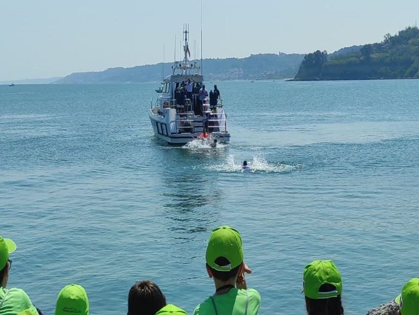 A coronamento della mattinata è stata effettuata, inoltre, una simulazione di recupero di un naufrago in collaborazione con le unità cinofile della S.I.C.S., la Scuola Italiana