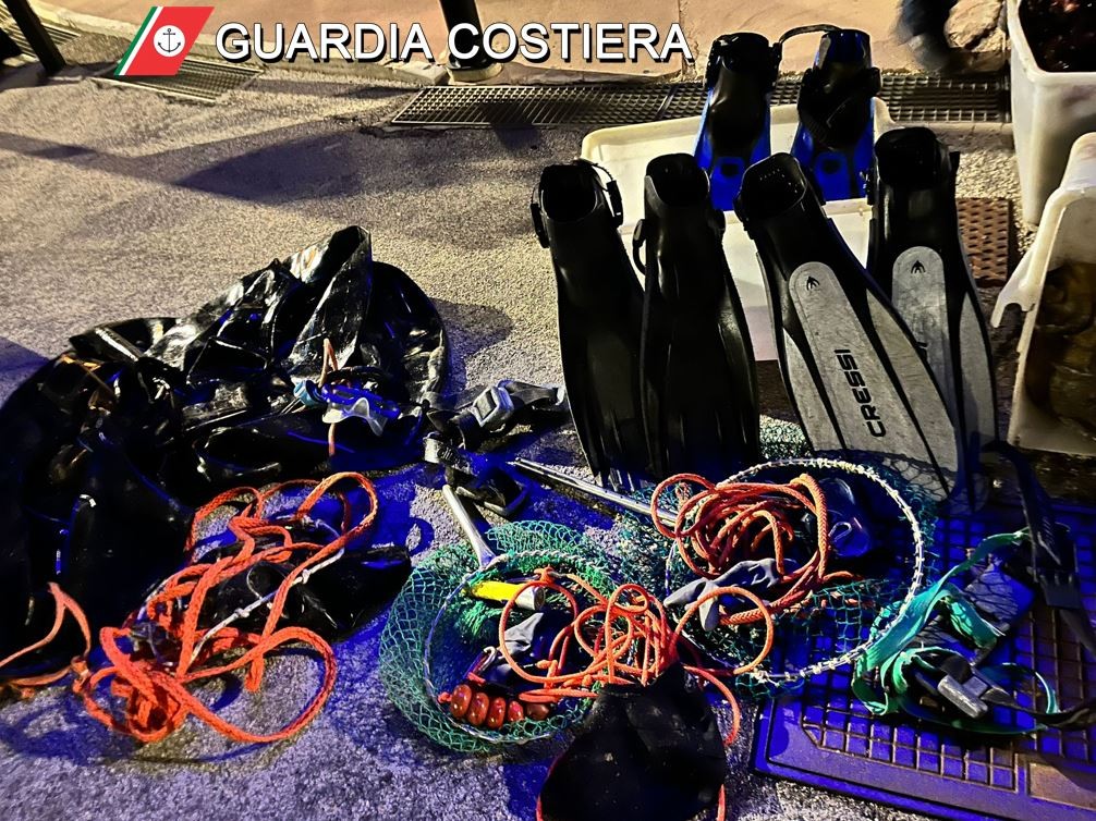 La squadra del Nucleo operativo di polizia ambientale della Capitaneria di porto, quindi, intervenuta sul posto, ha subito individuato le inconfondibili luci in acqua, che, a poche decine di metri dalla riva, rivelavano la presenza dei subacquei. Iniziava, così, il consueto, lungo ed attento appostamento che si concludeva solo intorno alle 03.00 del mattino, a diverse centinaia di metri dal punto di primo avvistamento, sul litorale sud di Francavilla al Mare, dove gli abusivi sono stati colti in flagrante mentre riportavano a terra il bottino della nottata di pesca. Tutti e tre i pescatori abusivi identificati provengono da fuori regione.