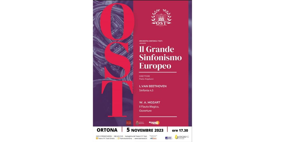 A dirigere l'Orchestra Sinfonica Tosti sarà il maestro Paolo Angelucci. Protagonisti L. Van Beethoven, "Sinfonia n.5" da molti considerata la composizione che meglio incarna il vero Beethoven e W., Mozart con "Il flauto magico, Ouverture" opera della piena maturità dell'autore.