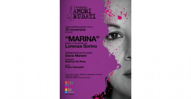 "Ho accolto con entusiasmo il coinvolgimento di Unaltroteatro nel progetto 'Amori Rubati': Ortona e lo Zambra entrano in questo modo a far parte integrante di un progetto dal respiro nazionale che vedrà cinque monologhi in cinque città d'Italia durante il mese di novembre tra le quali Ortona e che si concluderà con una tre giorni a dicembre a Roma dove gli stessi cinque monologhi andranno in scena tutti all'interno della stessa cornice del Palazzo delle Esposizioni" - spiega la Sorino che è attrice e regista di "Marina".