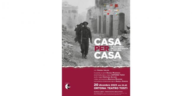 Secondo appuntamento teatrale con la Storia che, nel 1943, entrò tragicamente e violentemente nelle case degli ortonesi aprendo ferite che, a 80 anni di distanza, sono ancora vive nella memoria di una popolazione uscita stremata dalla Battaglia della Seconda Guerra Mondiale durante la quale si affrontarono, strada per strada, Alleati e Tedeschi e che valse alla città la Medaglia d’oro al Valor civile. Sul palcoscenico del teatro “Francesco Paolo Tosti” andrà in scena, mercoledì 20 dicembre alle 20:45, “Casa per Casa: il racconto della Battaglia di Ortona” del Teatro del Krak basato sul libro “I pellerossa che liberarono l’Italia” di Matteo Incerti (Corsiero editore).