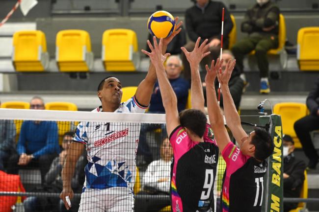 Gli ospiti rispondono con Garnica in regia e Bellei opposto. Al centro ci sono Zamagni e Barone mentre attaccanti di posto quattro Tiozzo e Sette. Libero Lamprecht.