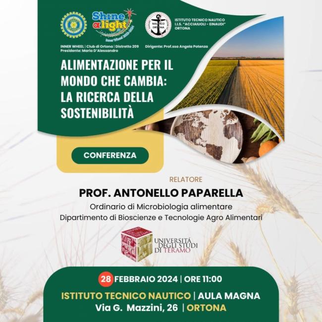 ll 28 Febbraio il club Inner Wheel di Ortona organizza, presso l'Aula magna dell'istituto Nautico, una conferenza sull'alimentazione che cambia, tema molto attuale.