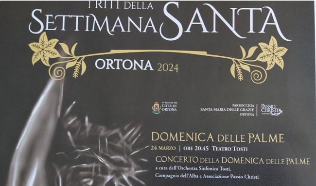Il concerto, tradizionale appuntamento della domenica delle Palme, vedrà la straordinaria partecipazione dell'Orchestra Sinfonica Tosti, sotto la direzione del maestro Paolo Angelucci, e del coro della Compagnia dell'Alba diretto dal maestro Gabriele de Guglielmo.