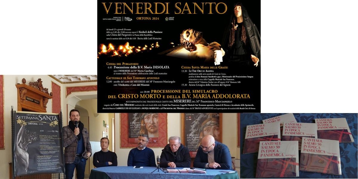 Presentati mercoledì 20 marzo al Teatro Tosti i riti della Settimana Santa che prenderanno il via con il Concerto della domenica delle Palme che si terrà domenica 24 marzo alle 20.45 dell'Orchestra Sinfonica Tosti con la Compagnia dell'Alba e l'Associazione Passio Christi.