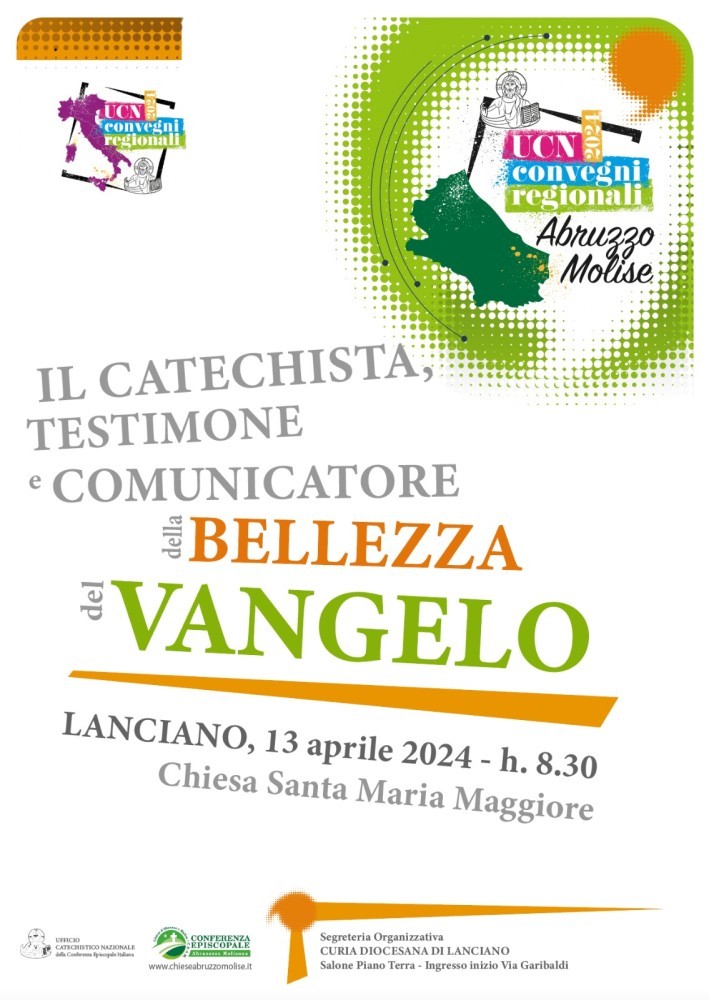 “Catechista testimone e comunicatore della bellezza del Vangelo”: è il titolo del convegno promosso dalla Consulta Catechistica regionale, in programma domani, sabato 13 aprile, a partire dalle 9.30 nella Chiesa di Santa Maria Maggiore, a Lanciano.
