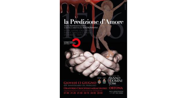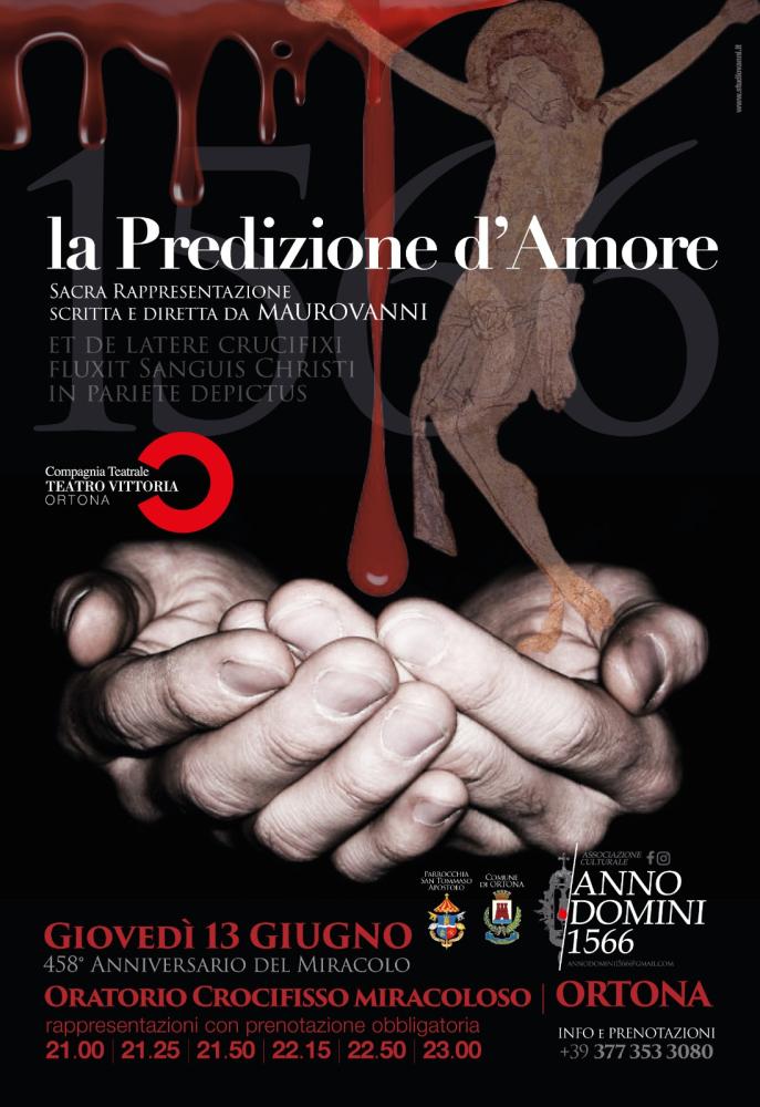 In occasione della ricorrenza del 458° anniversario del Miracolo del Crocifisso, avvenuto il 13 giugno 1566, la Compagnia Tetrale “Teatro Vittoria” in collaborazione con l'Associazione Culturale Anno Domini 1566, organizza la Sacra Rappresentazione dell'evento prodigioso presso l'Oratorio del Crocifisso Miracoloso, luogo in cui gli ortonesi venerano il Sacro affresco e l'Ampolla dov'è custodito devotamente il suo Santissimo Sangue.