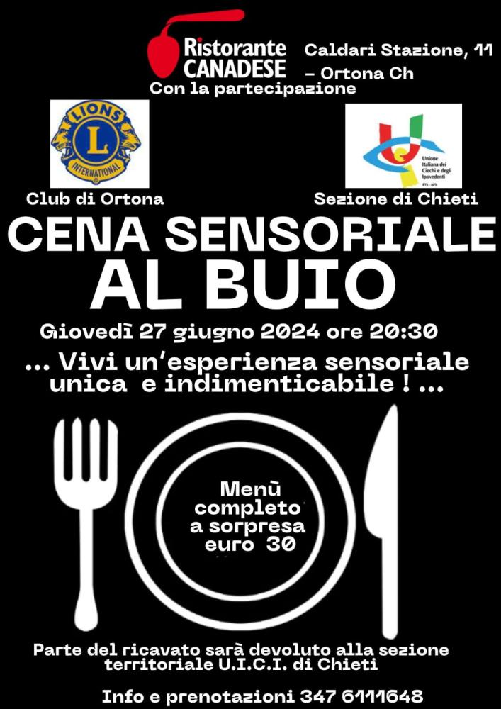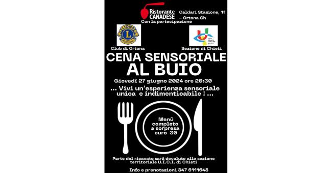 Parte del ricavato della cena sarà devoluto alla sezione territoriale di Chieti dell'Unione Italiana Ciechi e Ipovedenti ETS APS che curerà la serata.