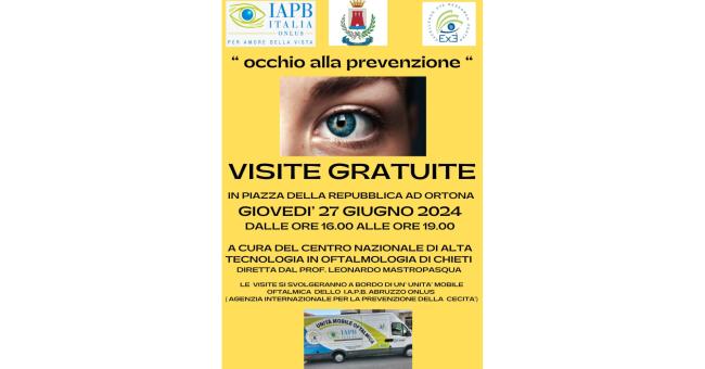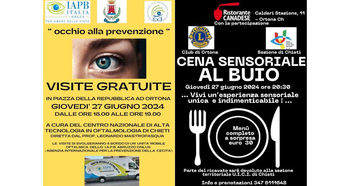 Il comitato abruzzese dell'Agenzia Internazionale per la Prevenzione della Cecità (I.A.P.B.) unitamente alla sezione territoriale di Chieti dell'Unione Italiana Ciechi e Ipovedenti, in collaborazione con il Centro di Eccellenza Nazionale di Alta Tecnologia in Oftalmologia di Chieti diretta dal professor Leonardo Mastropasqua, con il patrocinio del comune di Ortona, organizzano una giornata di prevenzione delle malattie oculari attraverso visite oculistiche gratuite e con la distribuzione di opuscoli informativi.
