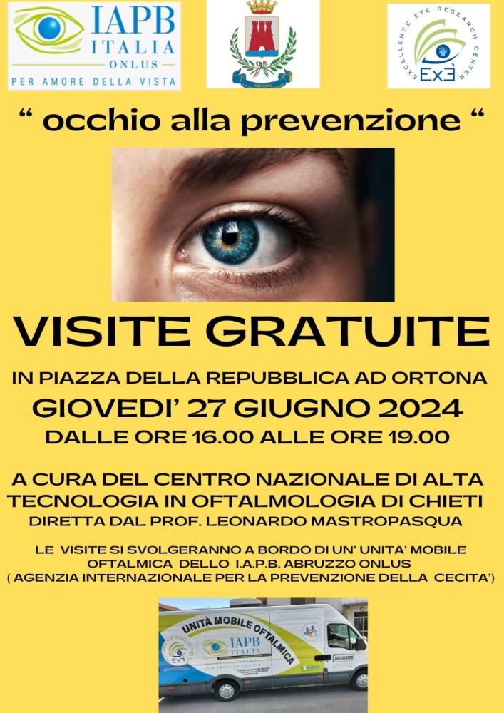 Giovedì 27 giugno 2024 a Ortona iniziative su prevenzione delle malattie oculari e sensibilizzazione sulle condizioni della minorazione visiva.