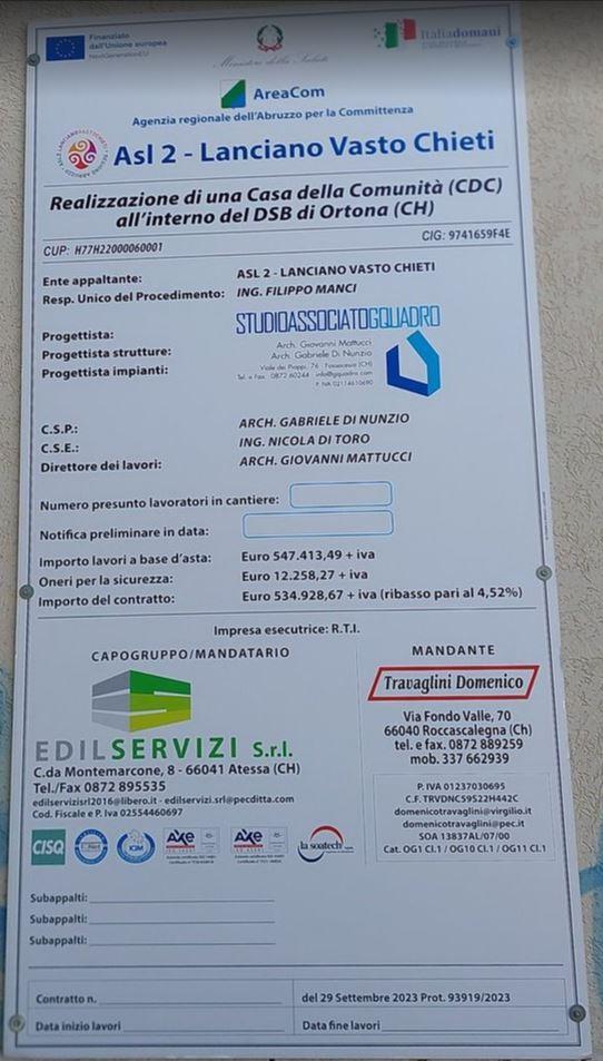 Un nuovo cantiere aperto, questa volta a Ortona, dove lunedì 7 ottobre 2024 è stato dato avvio ai lavori per la realizzazione della Casa di Comunità .