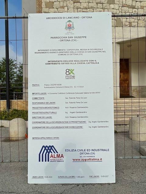 Rifacimento del tetto, messa in sicurezza e risanamento igienico sanitario con bonifica dalla presenza dell’eternit, nuovo intonaco e tinteggiatura: sono i lavori che da ieri interessano la chiesa parrocchiale di San Giuseppe ad Ortona.