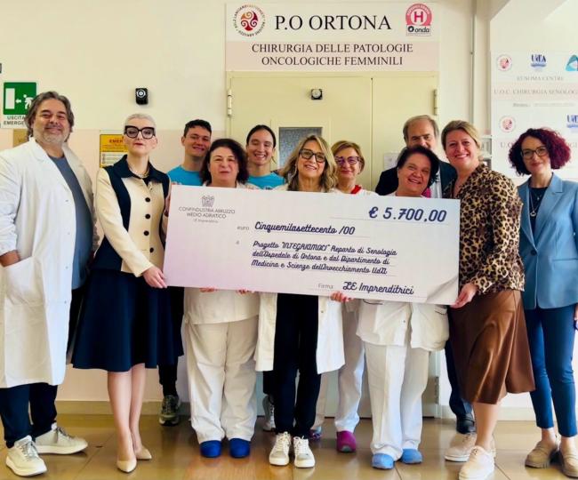 Ricerca, imprese e centri di cura insieme per il benessere delle donne. Questa la visione che ha portato oggi il gruppo Le Imprenditrici di Confindustria Abruzzo Medio Adriatico a donare 5.700 euro per la cura e prevenzione del tumore al seno, durante una cerimonia tenutasi oggi 11 aprile al reparto di Senologia dell'Ospedale “Gaetano Bernabeo” di Ortona.