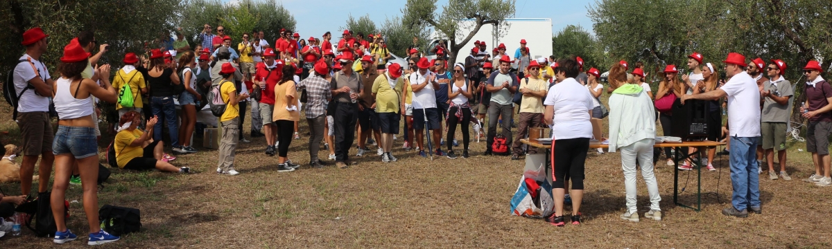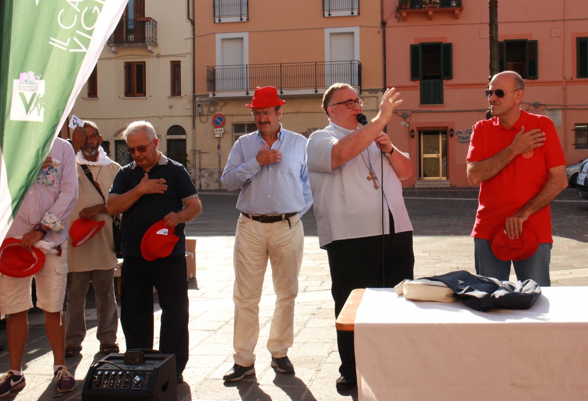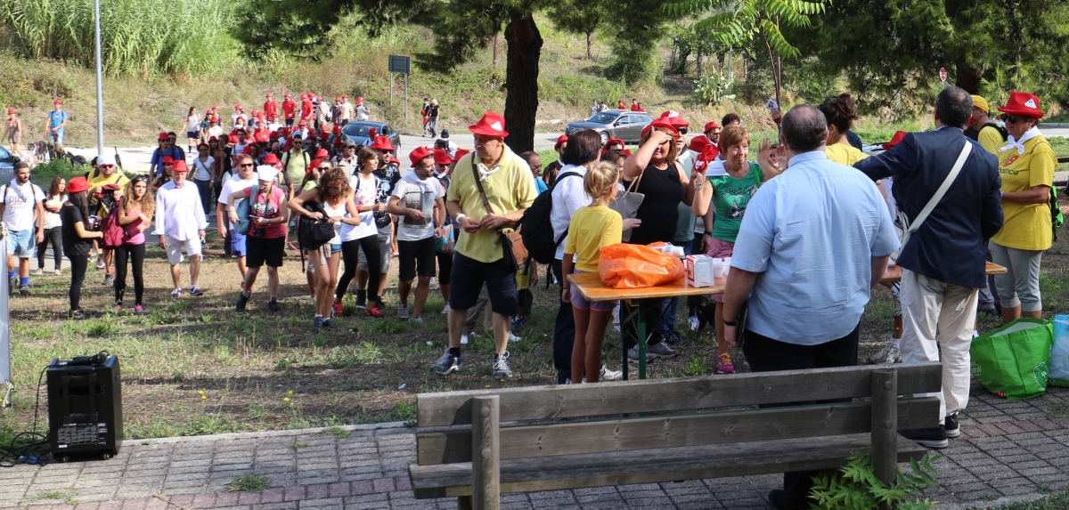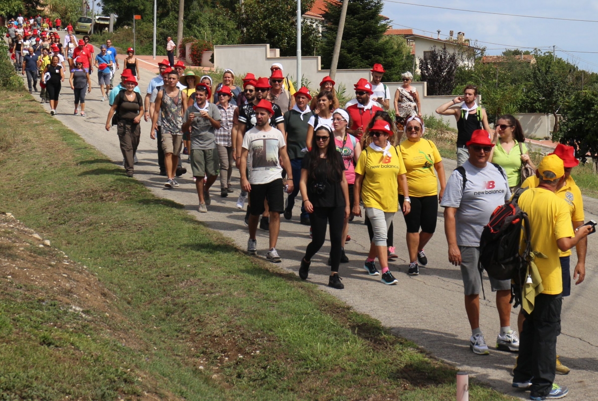 In piazza San Tommaso a Ortona i camminatori ritirano il “Passaporto del Vignandante” e dopo la benedizione