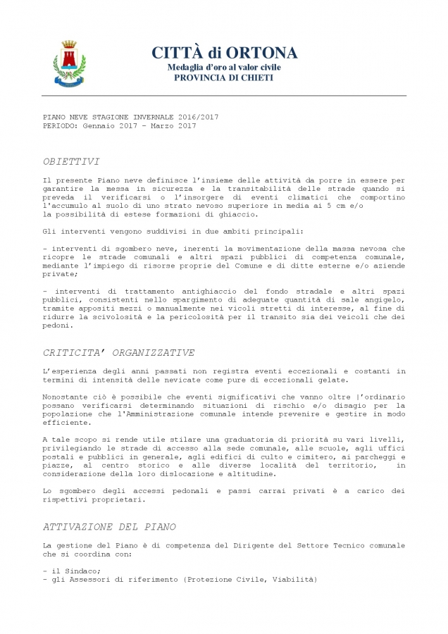e nell'ambito del Piano Neve del Comune di Ortona